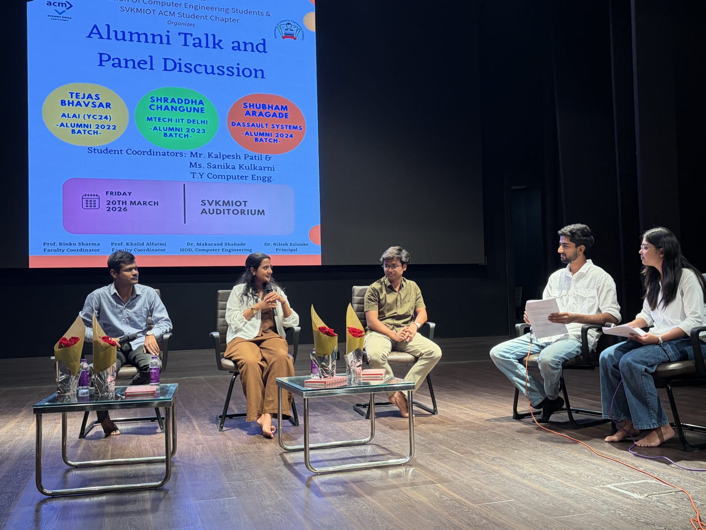 The Department of Computer Engineering at SVKM's Institute of Technology, Dhule, in association with the Association of Computer Engineering Students and SVKMIOT ACM Student Chapter, successfully organized the Alumni Talk and Panel Discussion, creating a platform for students to interact with distinguished alumni and gain insights into industry trends and career growth.